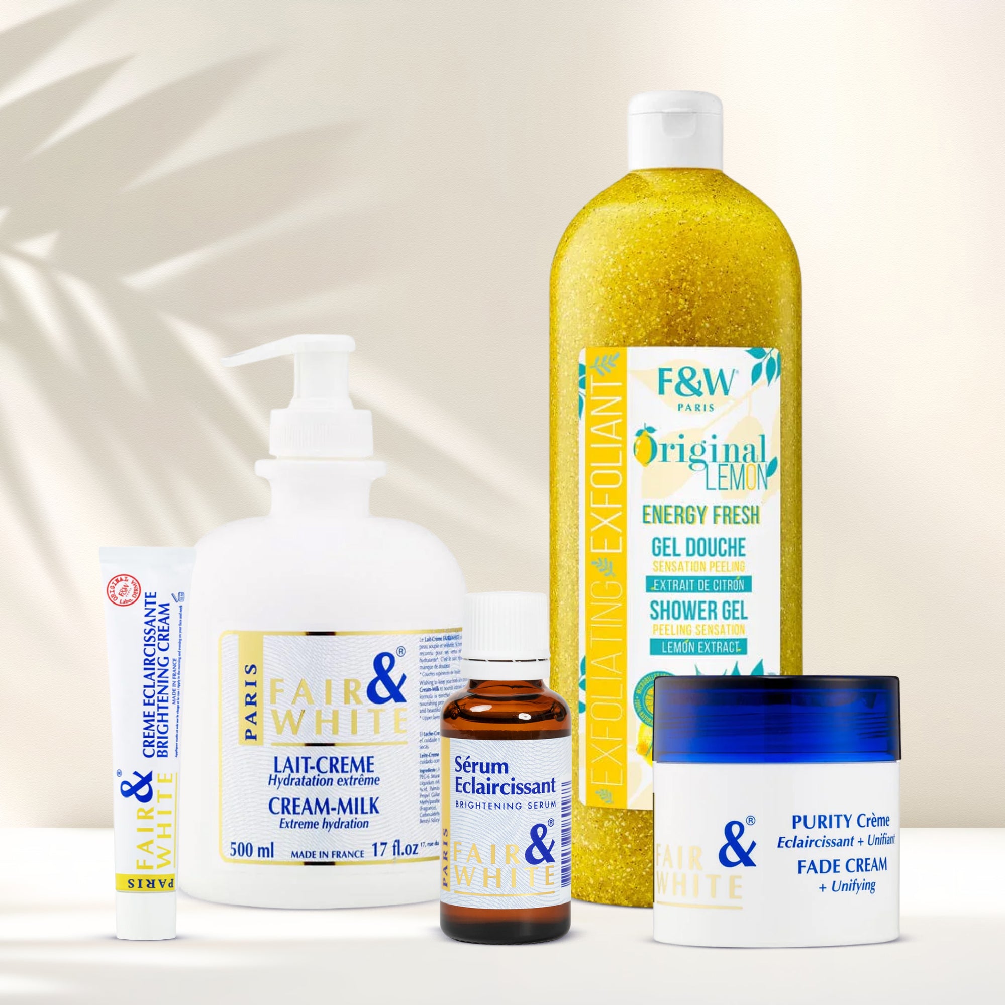The Fair And White Original Brightening And Fade Care Bundle is your complete solution to visibly brighten, smooth, and restore your skin’s natural glow — giving you the confidence to love your skin again. ✨